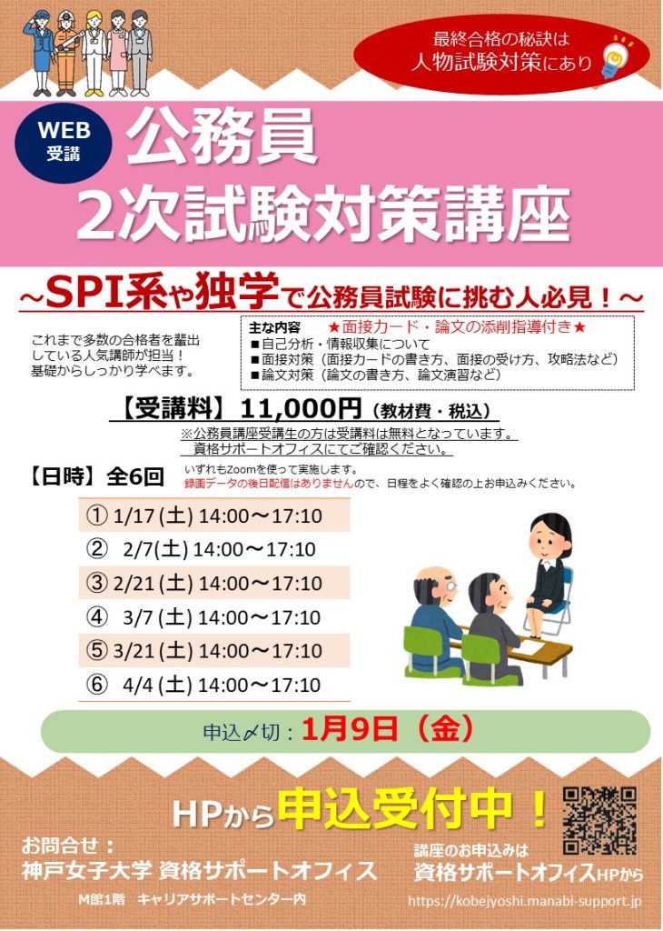 ■公務員・2次試験対策講座 申込み開始(1/9まで)■