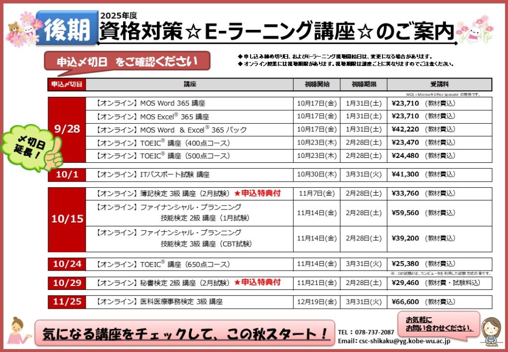 申込期限を過ぎた講座でも受講可能な場合もあります。